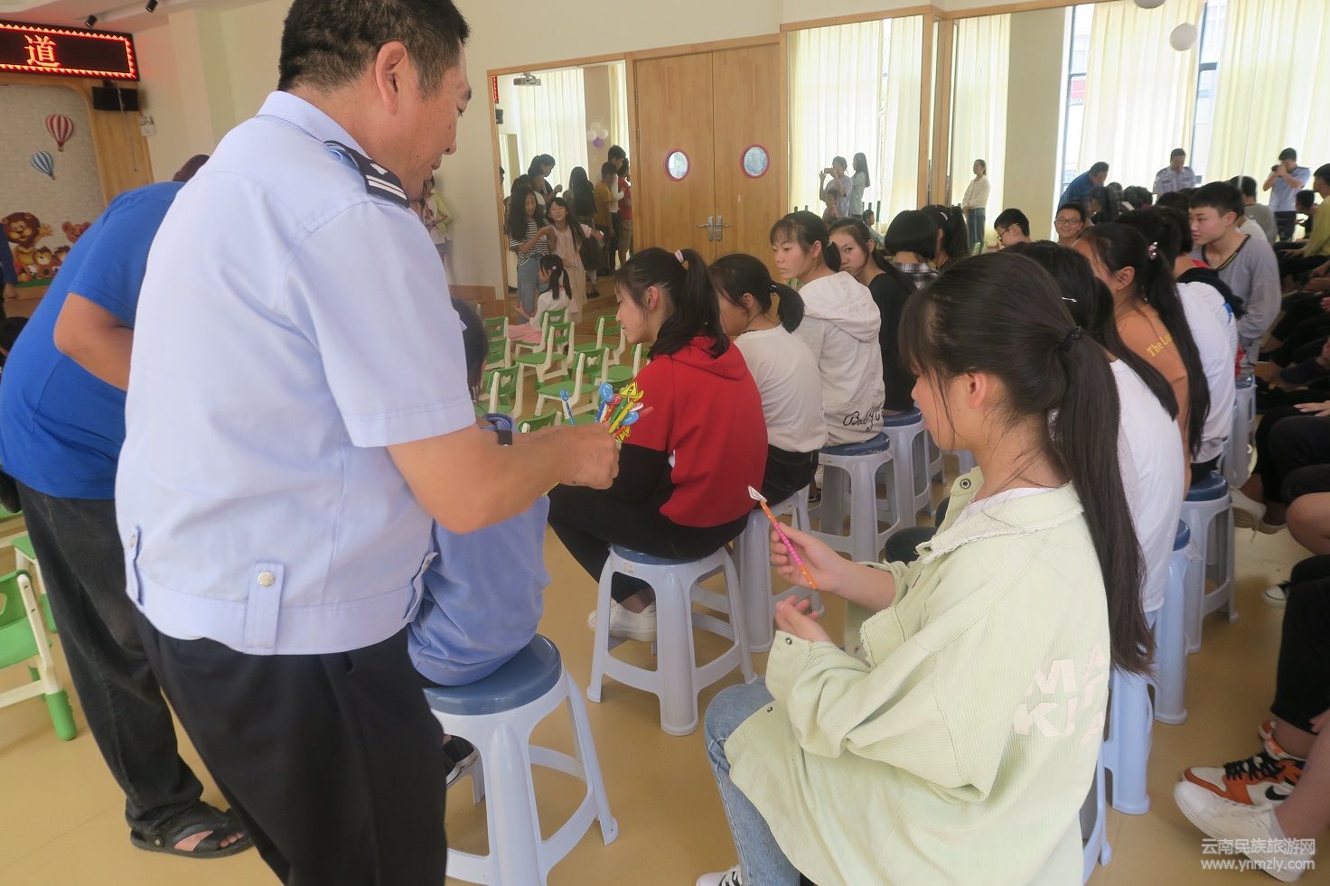 此次講座,大隊(duì)宣傳民警結(jié)合實(shí)際情況,列舉大量典型、鮮活的案例,以現(xiàn)場(chǎng)提問(wèn)作答互動(dòng)等方式,教學(xué)生們?nèi)绾握_識(shí)別交通信號(hào)和標(biāo)志,向?qū)W生們講解了上學(xué)、放學(xué)途中可能遇到的一些交通安全狀況,以及在橫過(guò)馬路時(shí)應(yīng)掌握的交通安全常識(shí),如注意觀察來(lái)往車輛、不嬉戲打鬧等。同時(shí)通過(guò)現(xiàn)場(chǎng)提問(wèn),與學(xué)生互動(dòng),詳細(xì)講解了在出行中容易忽視的問(wèn)題和道路交通標(biāo)志等方面的知識(shí),教育引導(dǎo)孩子們遠(yuǎn)離交通陋習(xí)和各類交通違法行為。最后,宣傳民警將帶有交通標(biāo)示的鉛筆、橡皮、尺子發(fā)放到每一個(gè)孩子的手中,普及了出行交通安全常識(shí)和暑期必須注意的交通安全事項(xiàng),進(jìn)一步強(qiáng)化了孩子們的自我防護(hù)意識(shí),有效避免了意外事故的發(fā)生。