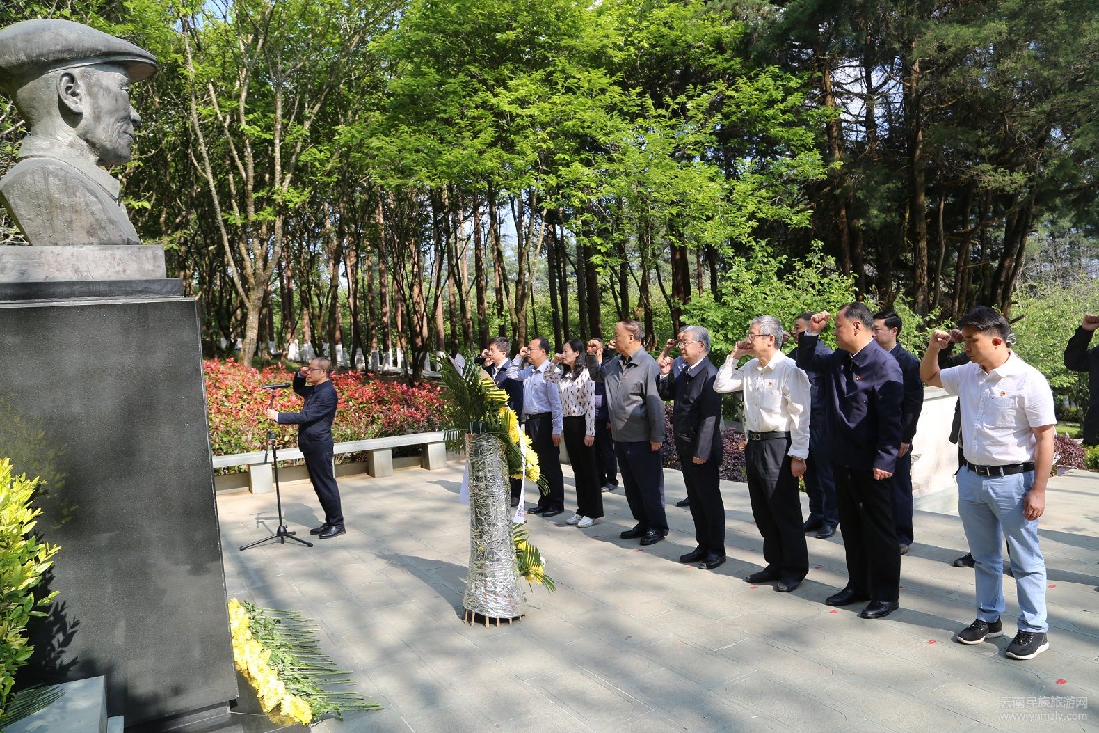 ▲黨員干部在楊善洲雕塑前莊嚴(yán)宣誓