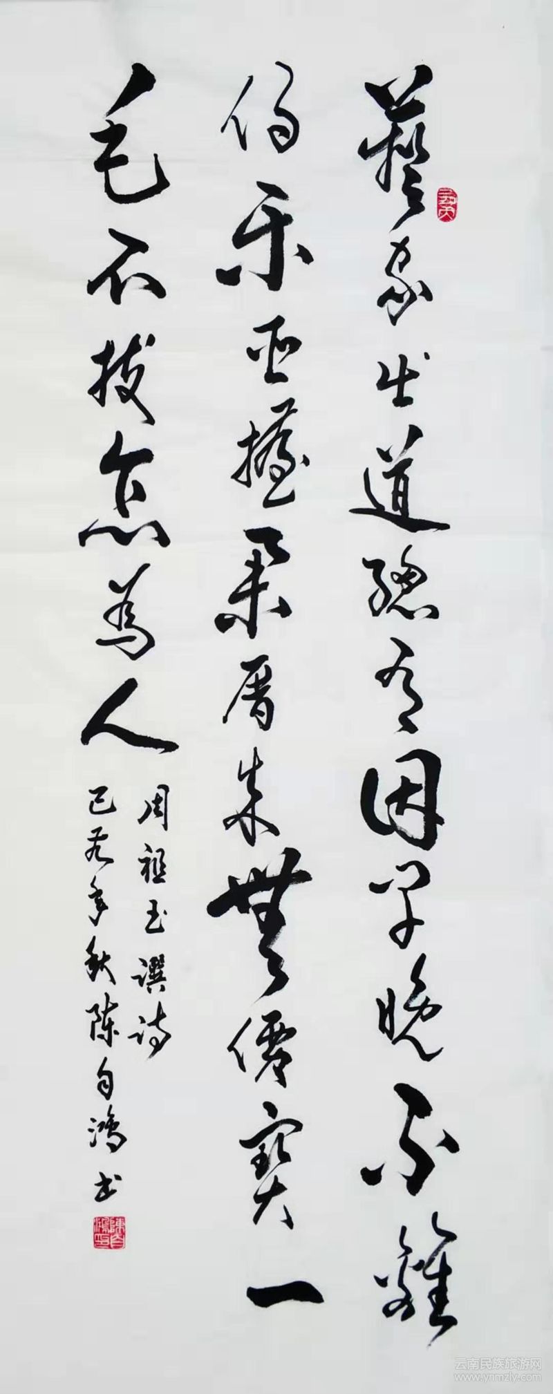 陳自鴻先生的作品,忠于傳統(tǒng),忠于字帖,道法自然,有骨有肉,隸書蠶昂雁翔,行草鳳翥龍騰,備受各地各族朋友賞識。
