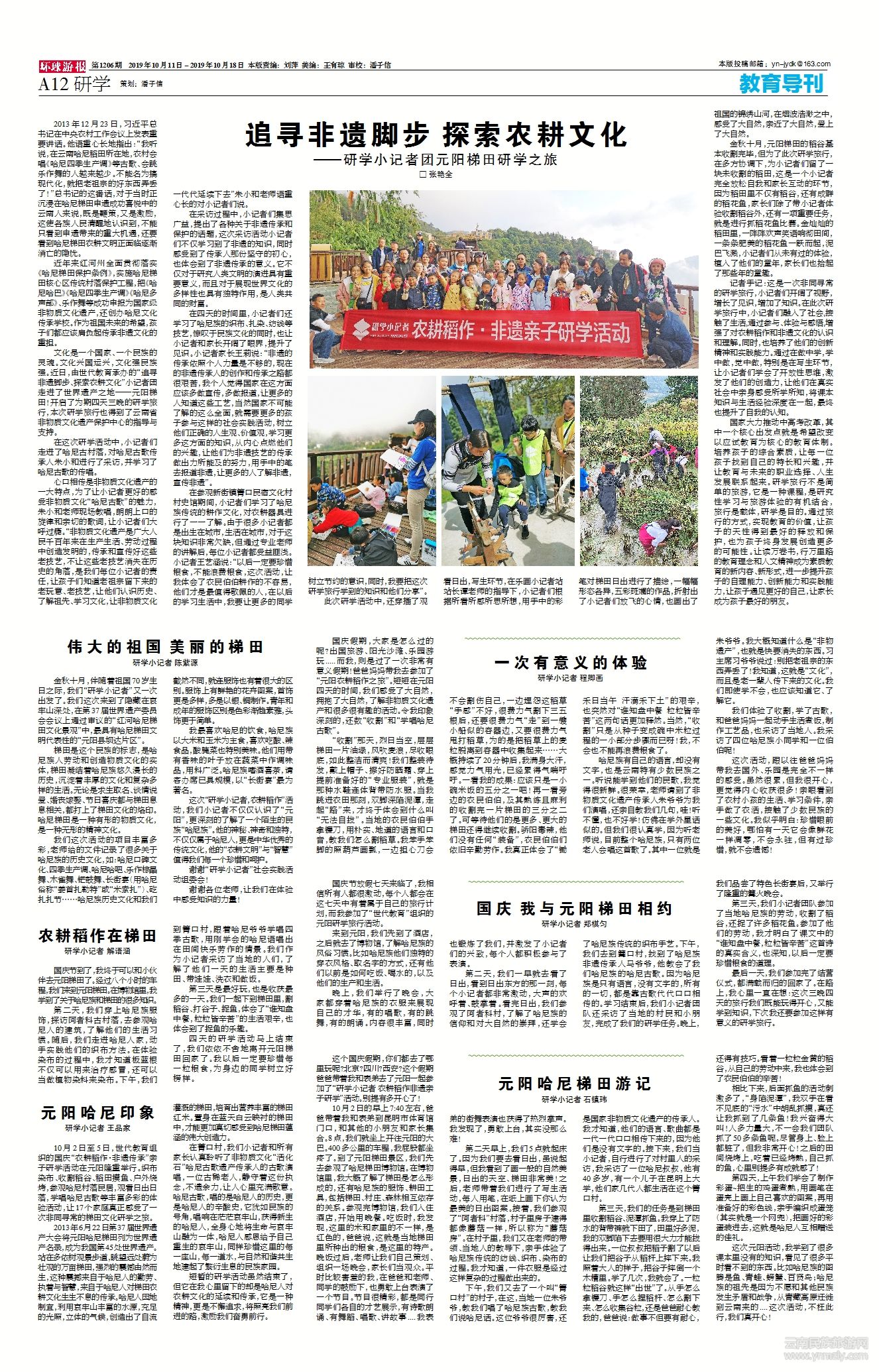 金秋十月,伴隨著祖國(guó)70歲生日之際,我們“研學(xué)小記者”又一次出發(fā)了。我們這次來(lái)到了隱藏在哀牢山深處,在第37屆世界遺產(chǎn)委員會(huì)會(huì)議上通過(guò)審議的“紅河哈尼梯田文化景觀”中,最具有哈尼梯田文明代表性的“元陽(yáng)縣壩達(dá)片區(qū)”。