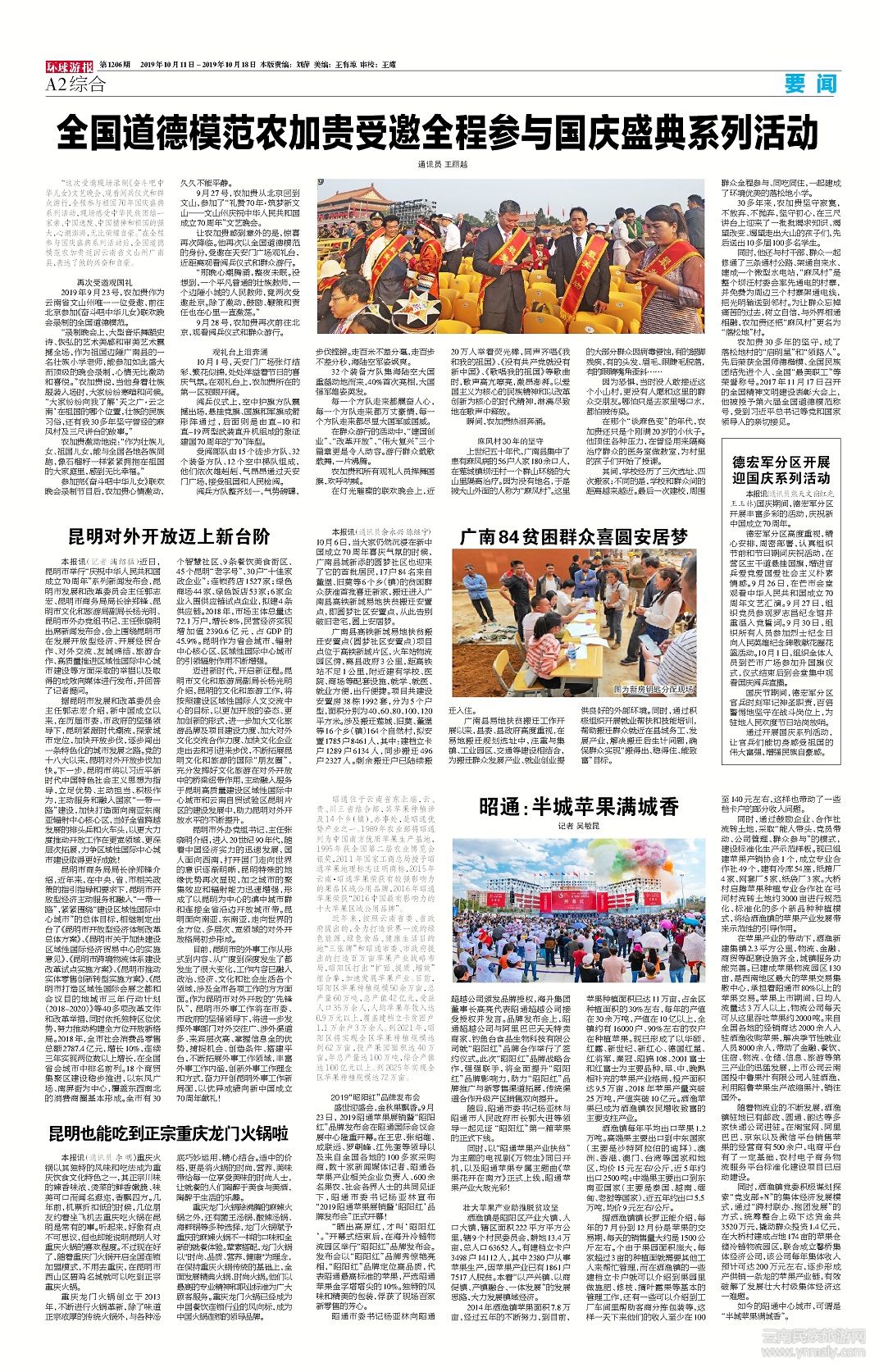 “這次受邀現(xiàn)場錄制《奮斗吧中華兒女》文藝晚會、觀看閱兵儀式和群眾游行,全程參與祖國70年國慶盛典系列活動,現(xiàn)場感受中華民族團(tuán)結(jié)一家親、中國速度、中國精神和祖國的強(qiáng)大,心潮澎湃,無比榮耀自豪。”在全程參與國慶盛典系列活動后,全國道德模范農(nóng)加貴返回云南省文山州廣南縣,表達(dá)了他的興奮和自豪。