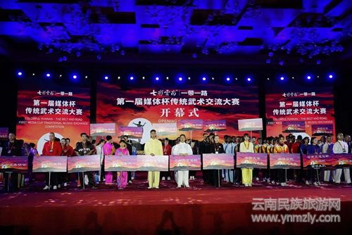 11月16日,“七彩云南·一帶一路”第一屆媒體杯傳統(tǒng)武術(shù)交流大賽即在七彩云南·古滇名城正式開賽,著名體育主持人黃健翔與云南省知名主持人顧姣姣點燃了現(xiàn)場。