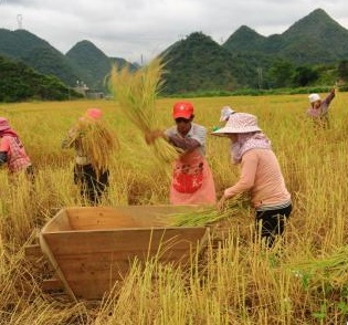 移步回到游客中心,已是正午時分,草草飽食了車上自備的干糧,又急匆匆趕往八寶壩子,準(zhǔn)備去拍拍稻農(nóng)打谷子的場面。