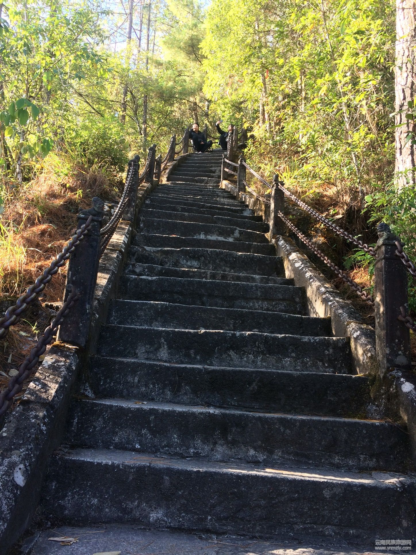 走過王母宮,坡度驟然變陡,這就是當?shù)厝丝诶锼f的的三折云梯了,這個云梯是通往山頂?shù)谋亟?jīng)之路。
