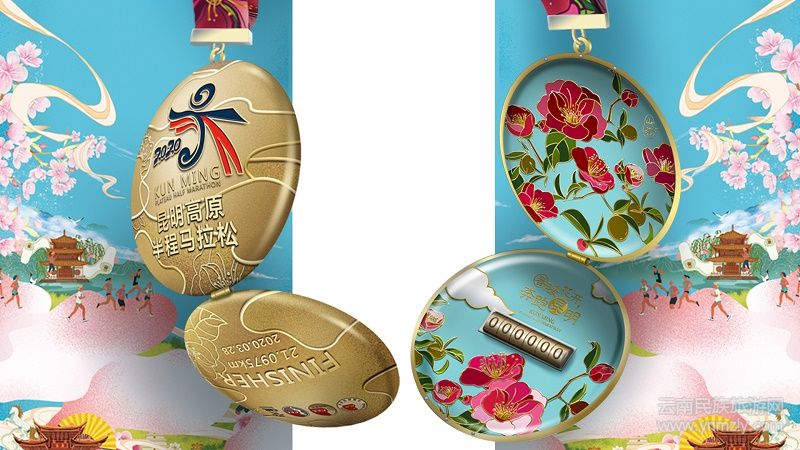 同時(shí)還公布了完賽獎(jiǎng)牌3D效果圖亮相,引發(fā)現(xiàn)場(chǎng)高潮。歲月流轉(zhuǎn),時(shí)間飛逝,昆馬已迎來(lái)第九年,本次半馬及10公里完賽獎(jiǎng)牌以懷表作為設(shè)計(jì)原型,取其“鐘情、鐘意”之意,這是對(duì)跑者的表白,更是對(duì)昆明這座城市的告白。獎(jiǎng)牌外部以線條勾勒出“山高云淡,山花盛開(kāi)”的景象,打開(kāi)懷表獎(jiǎng)牌,昆明市市花——山茶花盡現(xiàn)眼前,正中是一個(gè)可撥動(dòng)的數(shù)字撥盤,六位數(shù)字可任意組合出跑者的完賽時(shí)間,記錄下咬牙堅(jiān)持的榮耀時(shí)刻。