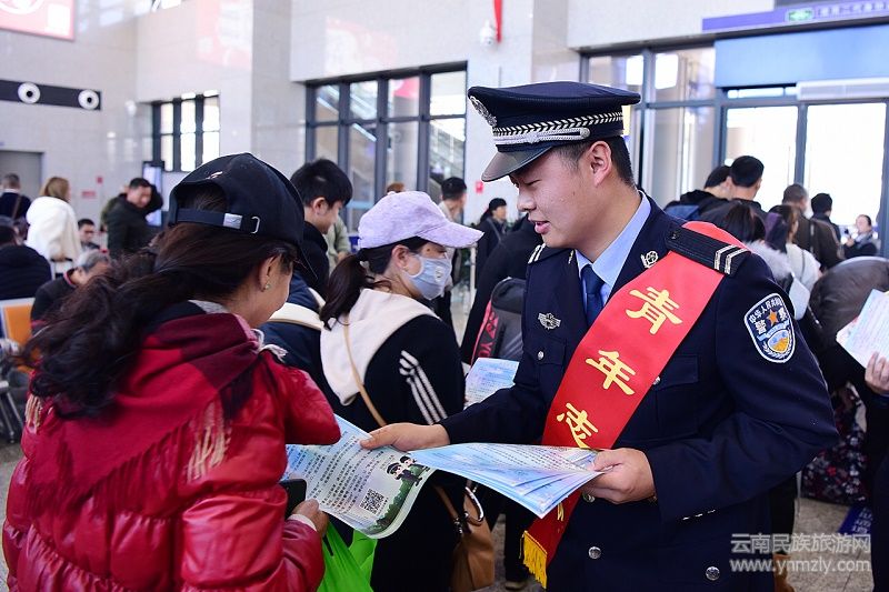 在為旅客送“福”、送歡樂(lè)之余,青年民警們來(lái)到旅客身邊,向廣大旅客宣傳購(gòu)買火車票注意事項(xiàng)、鐵路安全防護(hù)知識(shí)、防盜防騙及安全出行常識(shí),鼓勵(lì)旅客通過(guò)法律武器維護(hù)自身合法權(quán)益。民警還將印有開(kāi)遠(yuǎn)鐵路警方報(bào)警電話、鐵警微信公眾平臺(tái)等內(nèi)容的宣傳單發(fā)放到旅客手中,確保旅客在出行遇到困難時(shí),第一時(shí)間向鐵警尋求幫助。同時(shí),積極疏導(dǎo)客流、維護(hù)乘降秩序,幫助旅客提拉行李、攙扶老人小孩等一系列便民利民服務(wù)活動(dòng),努力為廣大旅客營(yíng)造溫馨和諧的候車環(huán)境,讓旅客切實(shí)感受到冬日里的溫暖和關(guān)懷,受到旅客群眾的一致好評(píng)。