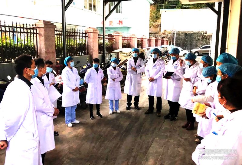 早晨,在施甸縣人民醫(yī)院辦公樓下的院場上,醫(yī)生們在交班。王雪帶領(lǐng)著疫情防控領(lǐng)導(dǎo)小組成員一起分析昨天出現(xiàn)的問題,大家紛紛提出處理的意見建議。