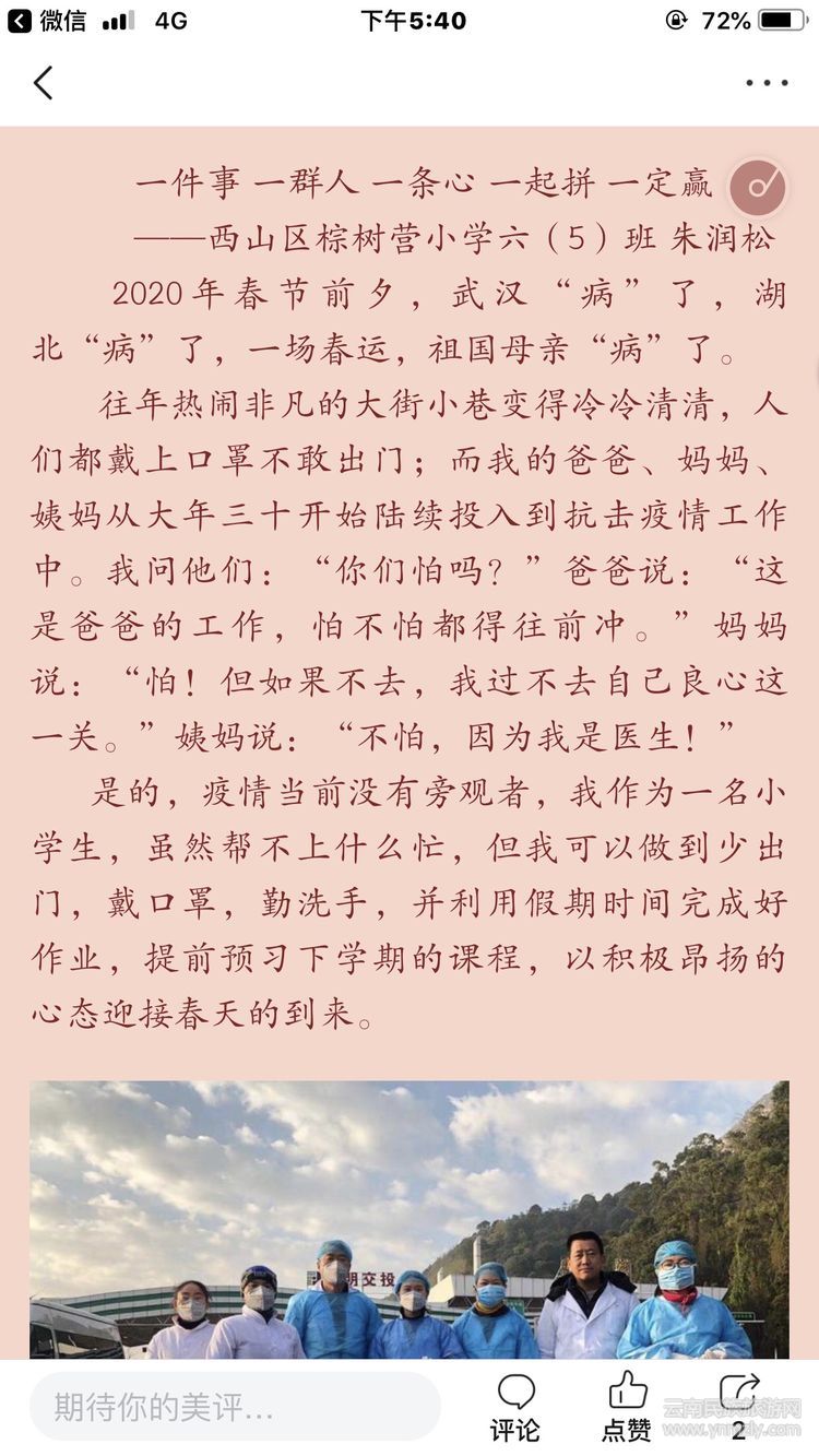 云南民族旅游網(wǎng)訊 2020年春節(jié),一場沒有硝煙的遭遇戰(zhàn)不期而至。疫情就是命令,防控就是責(zé)任。在這非常時(shí)期,作為棕樹營小學(xué)畢業(yè)班的老師,如何對(duì)在家里的學(xué)生進(jìn)行相關(guān)的指導(dǎo)呢?為戰(zhàn)勝疫情同學(xué)們又是如何做呢?