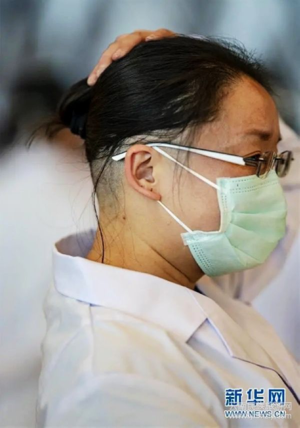 來自云南省腫瘤醫(yī)院的醫(yī)療隊隊員董雯為了方便穿防護服,剪去了自己的齊腰長發(fā)。