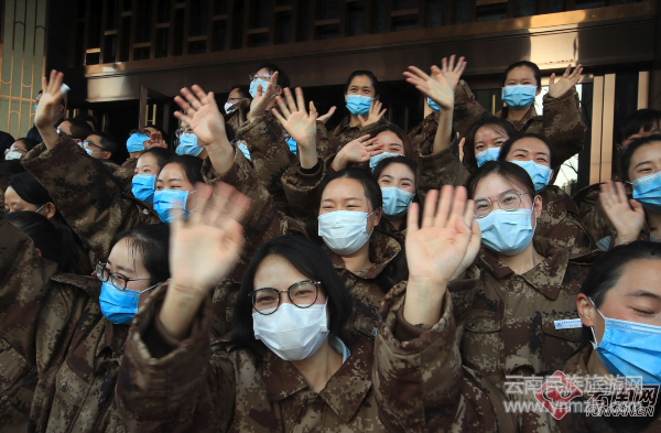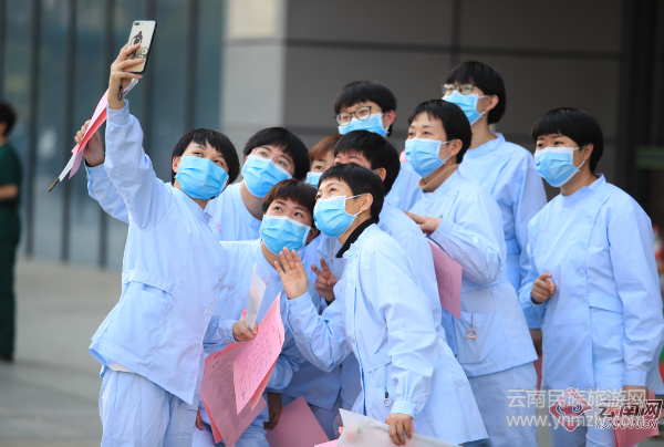 3月17日,云南省第二批支援湖北省醫(yī)療隊在合影時,向曾經(jīng)奮戰(zhàn)過的“主戰(zhàn)場”揮手告別。