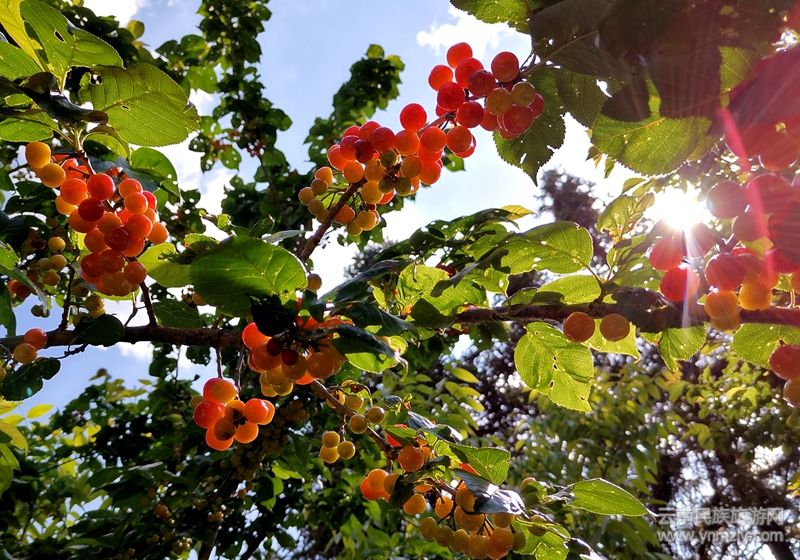 云南民族旅游網(wǎng)訊(記者尹紹平 通訊員 楊文華):隨著龍陵縣龍新鄉(xiāng)黑山村和菜子地村甜櫻桃的陸續(xù)成熟,游客們紛至沓來前來采摘。正所謂“墻內(nèi)開花墻外香”,但首先也要“墻內(nèi)香”,于是筆者決定前往目的地櫻桃園一探究竟!沿著鄉(xiāng)村公路而行,滿眼春色,景致怡人!太陽光照耀下的龍新大地異常清晰而美麗,近處是那些已經(jīng)發(fā)黃等待收割的麥田,還有三三兩兩的農(nóng)人扛著勞作的農(nóng)具,行走在公路兩邊……