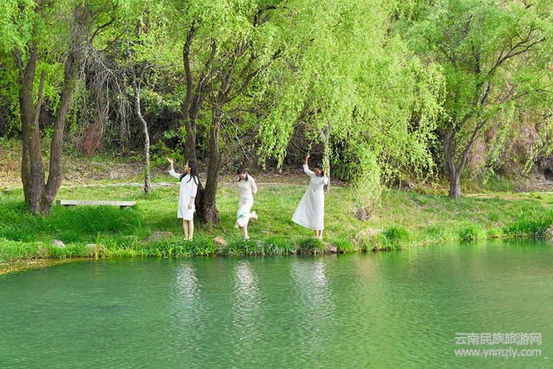 清幽的環(huán)境中,隱隱有琴聲傳來。循聲看去,發(fā)現一名白衣女子正在柳樹下,用古箏彈奏著天籟般的音樂。一首《漁舟唱晚》,與柳條間灑下的夕陽光完美的融合,把山、水、花、葉、鳥、人,還有三條“龍”一起,醉在了春天。