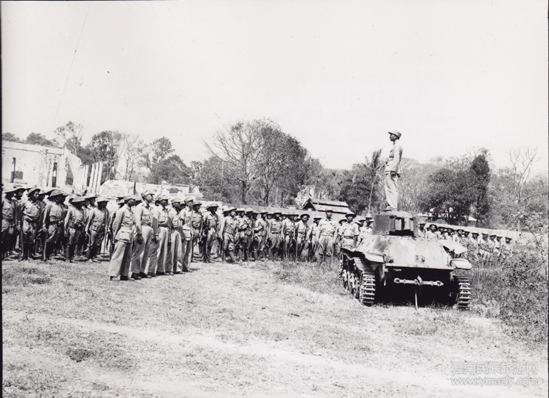 五十師師長潘裕昆將軍站在繳獲的日軍坦克上對官兵發(fā)動員令