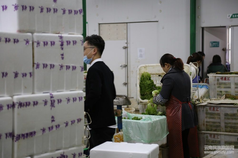 明康匯生態(tài)農(nóng)業(yè)集團(tuán)云南瀘西種植有限公司的加工車間里,工人們在流水線般地忙碌著:分揀、剔除、包裝、進(jìn)箱……這些裝箱后的蔬菜,將第一時(shí)間通過拖車和冷鏈車發(fā)往北上廣和全國各地。