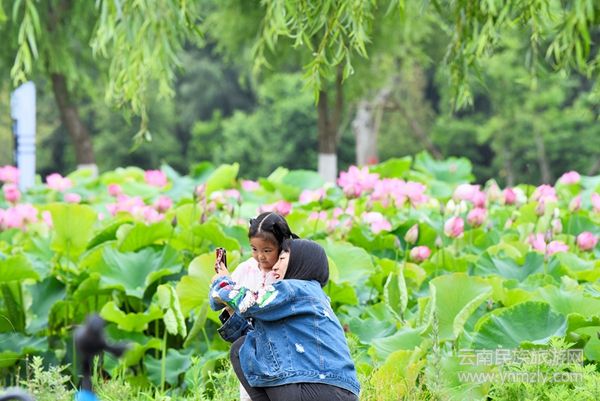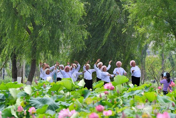昌寧的荷花,不僅僅在當(dāng)?shù)赜杏绊懀恍┲苓吙h份的人,也會(huì)慕名前來(lái),用半天時(shí)間看看花,然后在昌寧吃一頓飯。這,應(yīng)該是一種最愜意的旅游,實(shí)實(shí)在在地把眼前的茍且活成詩(shī)和遠(yuǎn)方。端午節(jié)上午,荷塘邊來(lái)了一群身著民族服裝說(shuō)著民族語(yǔ)言的人,別看她們年紀(jì)都不小了,但拍花、自拍、互拍卻樣樣都來(lái),每一個(gè)人的臉上都樂(lè)樂(lè)呵呵,玩嗨了還放起音樂(lè)跳起舞唱起歌,在盛開(kāi)的荷花的映襯下,盡情揮灑心中的快樂(lè)。