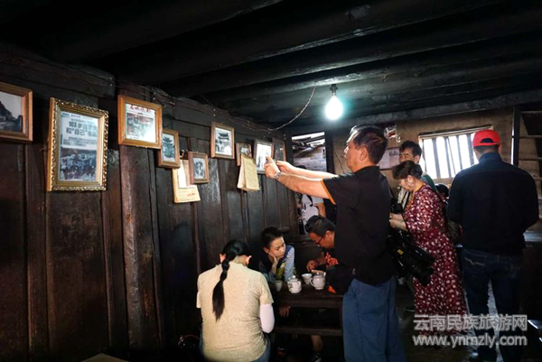墻上掛著南僑機工、盟軍士兵在這里喝茶的照片。
