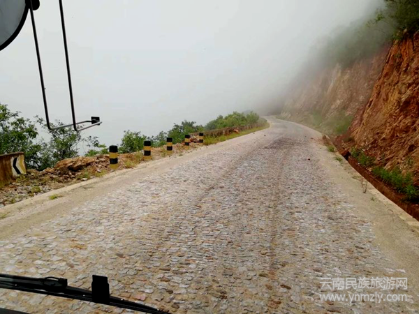 汽車繼續(xù)行駛在山高、坡陡、彎急、懸崖深不見底的、石子鋪就的盤山公路上。