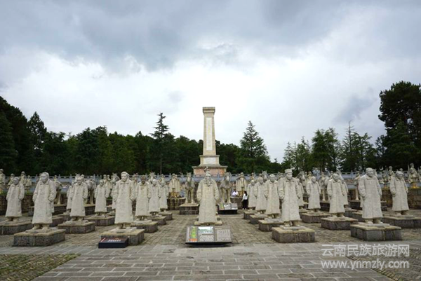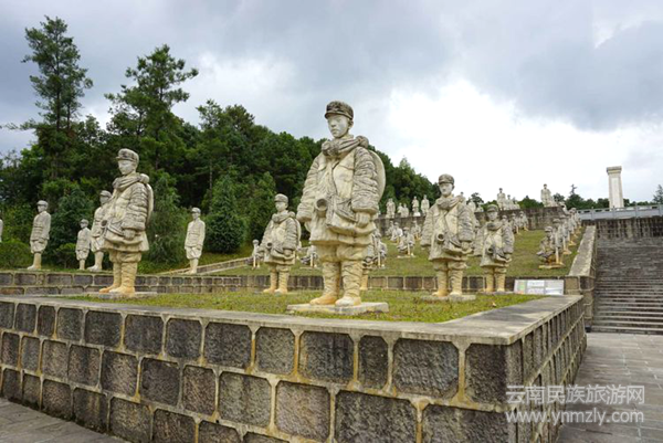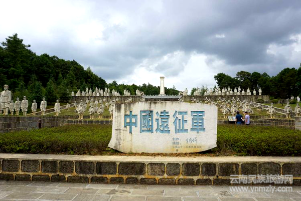山頂上排列著整齊劃一的幾百尊中國遠征軍雕塑。