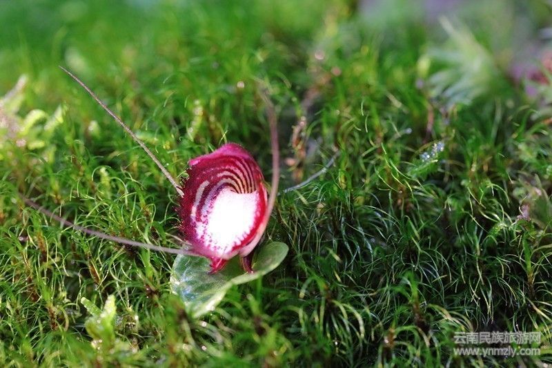據(jù)科研人員介紹,蘭科鎧蘭屬植物為地生草本,罕見附生,僅有一枚葉、單朵花,整個(gè)植株只有數(shù)厘米高。鎧蘭屬約有150種,主要分布于新幾內(nèi)亞、澳大利亞、太平洋各島,向上經(jīng)東南亞延伸至喜馬拉雅山脈,中國分布有六個(gè)種。此次調(diào)查的喜馬拉雅鎧蘭野外居群分布于兩座小山,沿海拔1790米~1860米的山脊及兩側(cè)山坡分布,主要生長于常綠闊葉林林下苔蘚及落葉層上,通常為幾十株甚至上百株聚集分布,總株數(shù)估計(jì)兩萬余株。科研人員在對其中一座山的喜馬拉雅鎧蘭進(jìn)行調(diào)查時(shí)發(fā)現(xiàn),在海拔1790米~1810米的一片區(qū)域,鎧蘭與喜馬拉雅鎧蘭共同著生于苔蘚及枯木上,但植株較少,約七百余株。