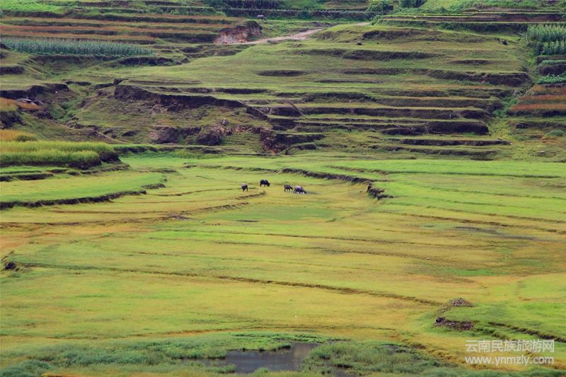 其實,水庫范圍內(nèi)的土地大部分已經(jīng)被征收,只是勤勞的農(nóng)民,怎么忍心眼睜睜地看著這樣肥沃的土地被白白地荒廢掉呢。于是,根據(jù)茄子山水庫蓄水、放水的規(guī)律,蚌渺的農(nóng)民形成了一種獨特的耕作方式。二月,湖水剛剛退下去,被湖水淹沒的田地一露出來,農(nóng)人就忙著種上了各種適合湖水漲落的時令莊稼。最低的地方種上生長周期較短,成熟較早的苦蕎;往上一點種上生長周期稍長的玉米和洋芋;湖水不能淹到的地方照常種上水稻。到了八、九月份,湖水一上漲,農(nóng)人也就忙著搶收莊稼。就這樣,每年蚌渺湖都會上演滄海桑田的變化。正因為蚌渺湖是茄子山水庫的衍生湖。所以,形成了人與湖和諧共榮的獨特景象。