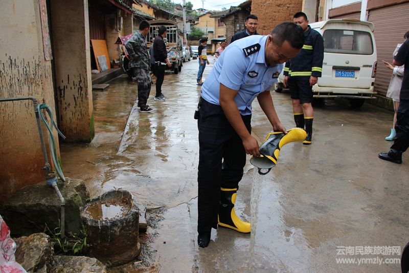 下雨的姚關氣溫不高,灌進群眾家中的水冰涼冰涼的,而他們在里面一泡就是一個多小時,你看他們離開時走的路,一條一條的水線,是他們身上滴下的水連成的線,這些密密麻麻的水線就像他們和人民群眾水乳交融的關系,互不分割,魚水之情。