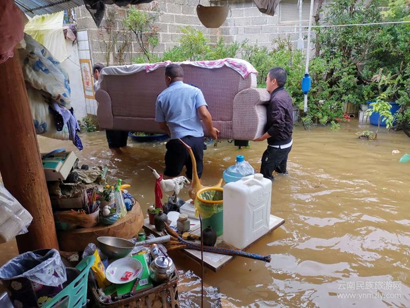連日的大雨,姚關境內河道告急,姚關老街子地勢低洼,泄水能力弱,最終淪陷在這8月連天大雨中,積起一片汪洋。部分老宅由于建蓋時間久,排水系統(tǒng)差,導致大水漫灌進戶,受災嚴重。姚關街八組劉海杰戶、姚關街八組劉海澄戶、姚關街十組李富民戶,撥通了求救電話,電話里的群眾萬般焦灼。