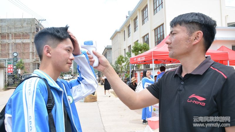 開(kāi)學(xué)的頭一天( 8月31日),萬(wàn)興中學(xué)就在校園門(mén)口入校通道擺好了登記冊(cè)、體溫測(cè)量器、消毒設(shè)備,給入校學(xué)生測(cè)量體溫,進(jìn)行登記。在校門(mén)口設(shè)置臨時(shí)等候區(qū),為入校時(shí)出現(xiàn)可疑癥狀的人員提供臨時(shí)處置場(chǎng)所。無(wú)關(guān)人員一律不準(zhǔn)進(jìn)校,師生員工進(jìn)校門(mén)一律核驗(yàn)身份、掃健康碼、測(cè)量體溫。