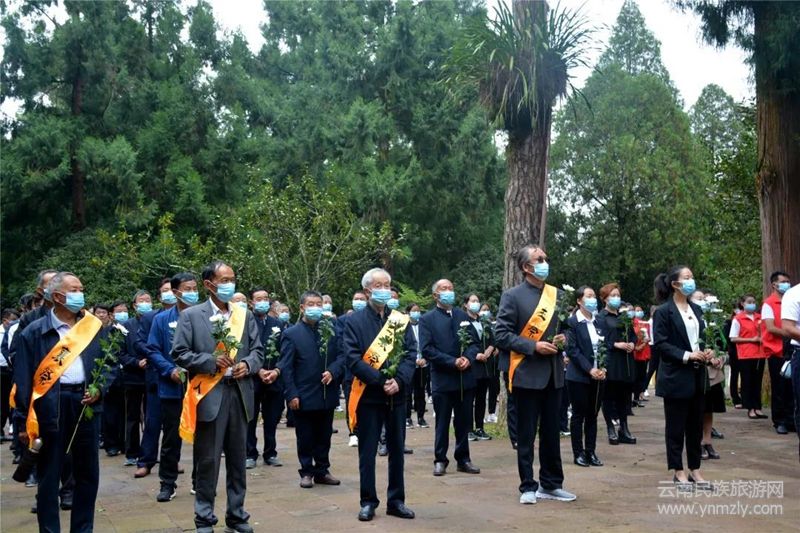 早上9:00,莊重的《慰魂曲》奏響,騰沖市文化和旅游局負(fù)責(zé)人和抗戰(zhàn)老兵代表盧彩文向抗日英烈敬獻花圈,參加拜謁的全體人員依次向抗日陣亡將士敬獻鮮菊,并一同向抗日陣亡將士鞠躬致敬,表達對英烈們由衷的敬意和深切的緬懷。