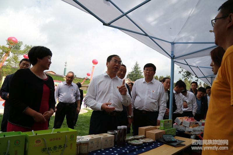 昆明市人大常委會副主任、尋甸縣委書記何健升宣布尋甸一丘田善態(tài)莊園開業(yè)。