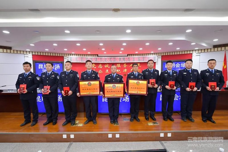 隨后,昆明市公安局舉行榮譽(yù)儀式,對立功受獎的集體和個人代表進(jìn)行現(xiàn)場表彰并頒授獎狀及獎?wù)伦C書,為從警10年、20年、30年民警代表及近期光榮退休民警代表頒授紀(jì)念章。