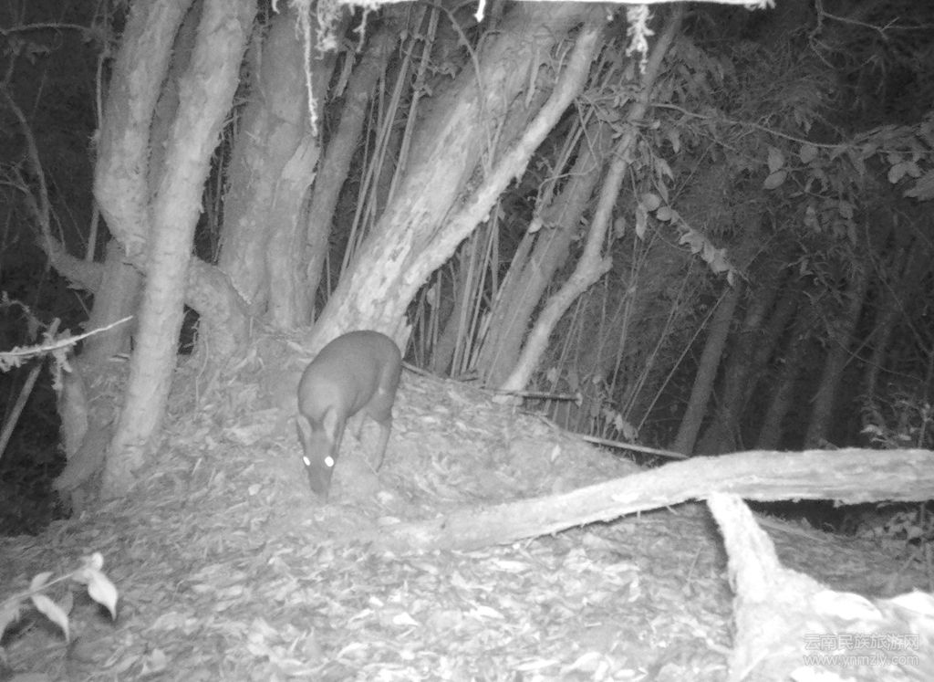 從紅外相機拍攝到的影像可以看到,2020年12月30日凌晨3點多,一只偶蹄目動物眼睛明亮,警惕的豎著耳朵正在覓食,其頸部的兩側各有一條比較寬的白色帶紋,一直延伸到腋下,兩顆獠牙又長又尖,露在口外。專業(yè)技術人員一眼便認出,這是一只成年的雄性林麝。“從我們發(fā)現(xiàn)林麝的影像資料中可以看得出,無論從它的覓食、它的體型,還是它的活動情況來看都是比較健康的”昌寧瀾滄江縣級自然保護區(qū)管護局局長楊斌介紹。