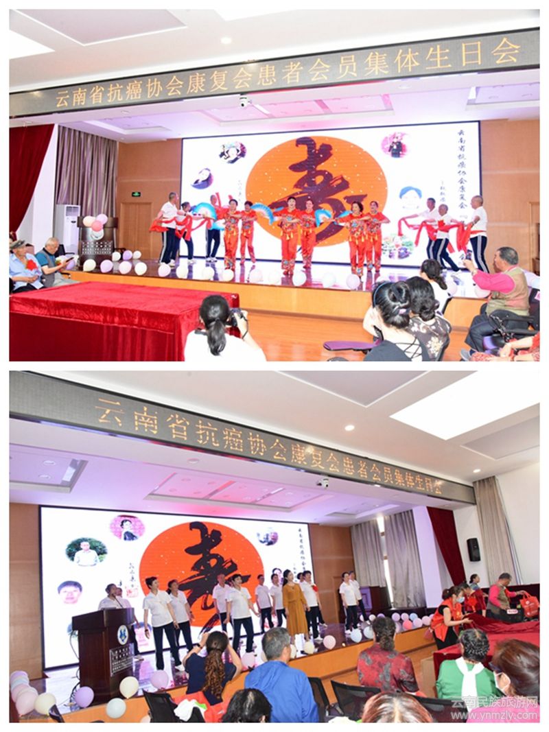 云南民族旅游網(wǎng)訊(記者尹達(dá)天)2021年5月20日下午,云南省抗癌協(xié)會康復(fù)會患者會員集體生日會在云南省腫瘤醫(yī)院醫(yī)技樓五樓報告廳成功舉辦,云南省腫瘤醫(yī)院黨委專職組織員、云南省抗癌協(xié)會康復(fù)會副會長秦亞輝同志,云南省抗癌協(xié)會康復(fù)會呂伯伊副會長、段永康副會長,云南省民營企業(yè)發(fā)展協(xié)會鄧雅允秘書長,云南省云芝凰健康科技有限公司王怡璇董事長,上海復(fù)宏漢霖生物制藥有限公司朱志輝經(jīng)理,云南省微量元素與健康研究會理事長、昆明醫(yī)科大學(xué)第二附屬醫(yī)院徐鵬遠(yuǎn)教授,以及新聞媒體、康復(fù)會志愿者和患者會員等共計(jì)160余人參加了本次集體生日會。生日會的主角是癌齡超過15年的康復(fù)會員,本次生日會由云南省抗癌協(xié)會康復(fù)會文體部部長劉慧光主持。