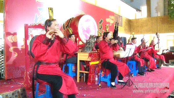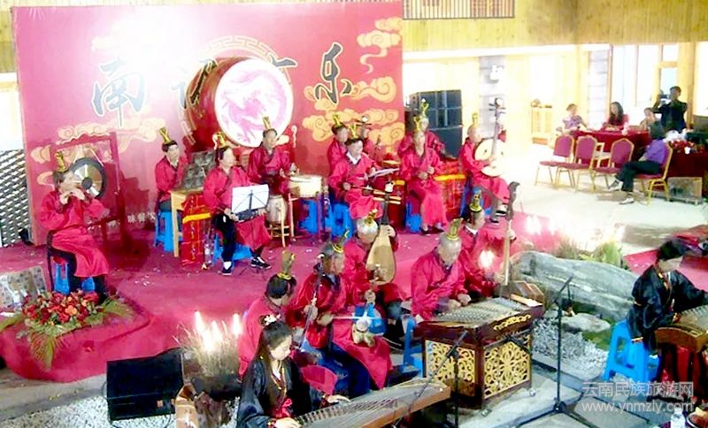 鏈接:“洞經(jīng)古樂”就是“南詔雅樂”俗稱,是流傳六百多年歷史的民族民間古樂,得名于“文昌大洞仙經(jīng)”為儒家禮樂,不僅吸取了中原文化和宮廷音樂的韻味,同時也融合了當(dāng)?shù)孛褡迕耖g音樂的風(fēng)格特色,形成了莊嚴(yán)典雅、深沉古樸的獨特風(fēng)格,深受群眾喜愛。“南詔雅樂”主要是民族古器樂合奏曲,多為詞曲結(jié)構(gòu),弦樂、打擊樂多種樂器和諧配合,將吹、打、彈、拉、唱、誦融為一體。使用的樂器有瑟、箏、古琴、笙、簫、笛、拉弦樂器、青銅鑼、磬、鈸、鼓等數(shù)十種民族樂器。(來源:巍山微視)