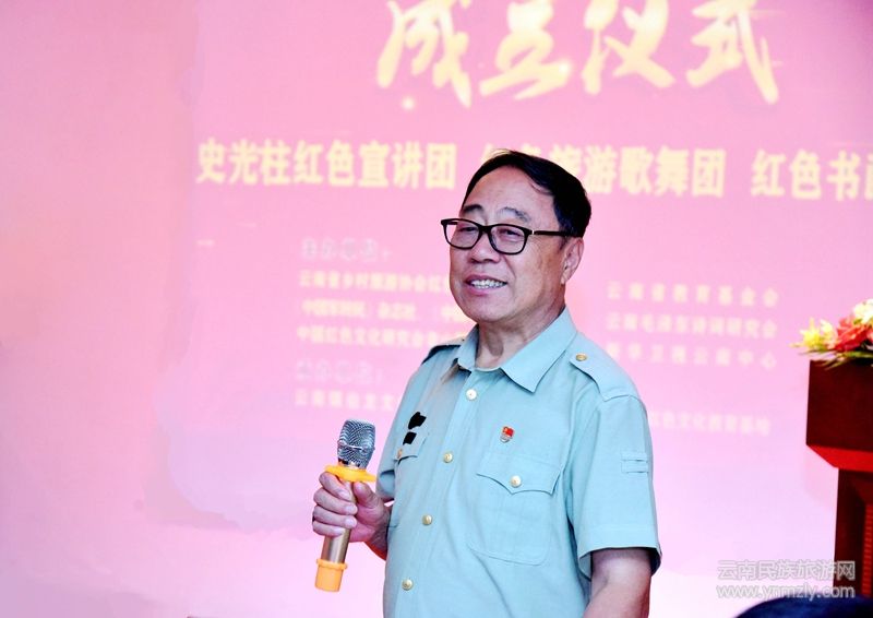 在成立儀式上,云南鄉(xiāng)村旅游協(xié)會紅色旅游專業(yè)委員會主任、錫伯龍企業(yè)關(guān)保昌董事長向參會的各位嘉賓介紹成立“史光柱紅色宣講團”、“紅色旅游歌舞團”、“紅色書畫屋”的目的。