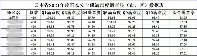 云南省2021年度群眾安全感滿意度調(diào)查縣(市、區(qū))數(shù)據(jù)表