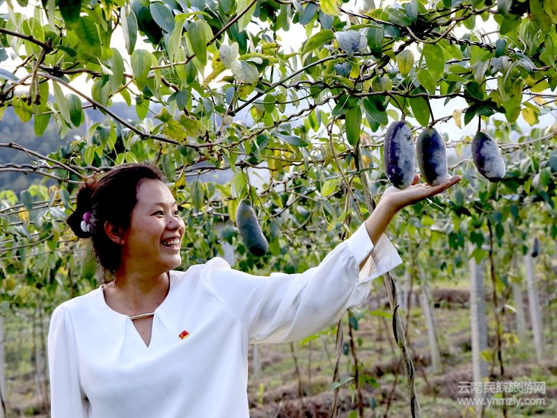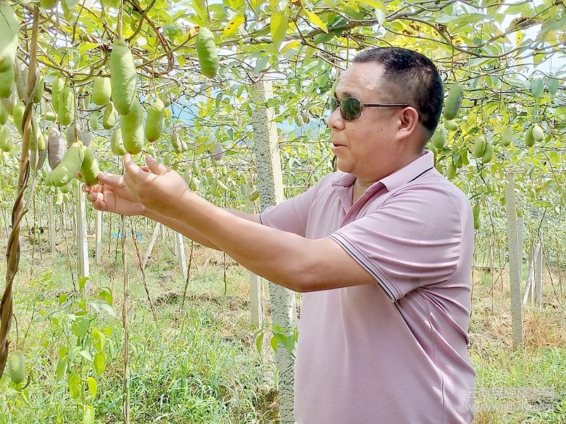 本網(wǎng)訊(通訊員張?jiān)潞?黃明曉)初秋時(shí)節(jié),龍川江畔橋街以南的陳寶道水果種植基地里,大片成串成團(tuán)的八月瓜沉甸甸掛滿花架之上。