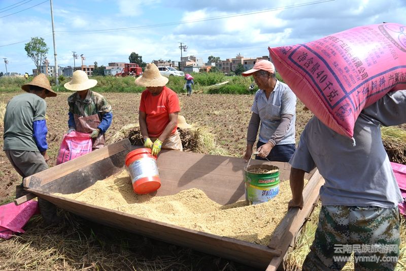 眼下,正是秋收農忙時節(jié),昆明市晉寧區(qū)晉城街道沙堤村田野的水稻一片金黃。為確保秋糧顆粒歸倉,在晉寧沙堤村的田野里,村民們正忙著抓住晴好天氣收割稻谷,田間地頭到處洋溢著豐收的喜悅,金黃的稻田和忙碌的身影構成了一幅絕美秋收畫卷。