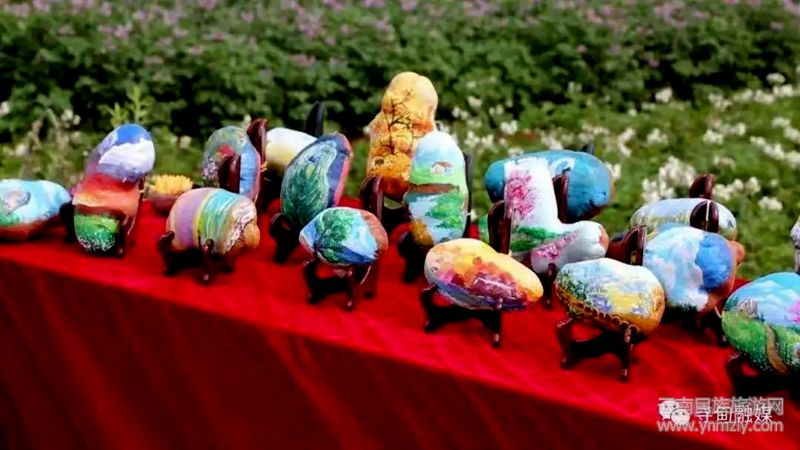 尋甸美術(shù)館邀請(qǐng)國(guó)內(nèi)知名農(nóng)民畫專家,對(duì)農(nóng)民畫創(chuàng)作群體進(jìn)行多輪培訓(xùn),逐步形成了一個(gè)以專業(yè)團(tuán)體為主的農(nóng)民畫創(chuàng)作群體,長(zhǎng)期深入基層也讓藝術(shù)家們找到了在農(nóng)副產(chǎn)品洋芋上繪畫的樂(lè)趣,他們的彩繪讓洋芋出盡了風(fēng)頭。