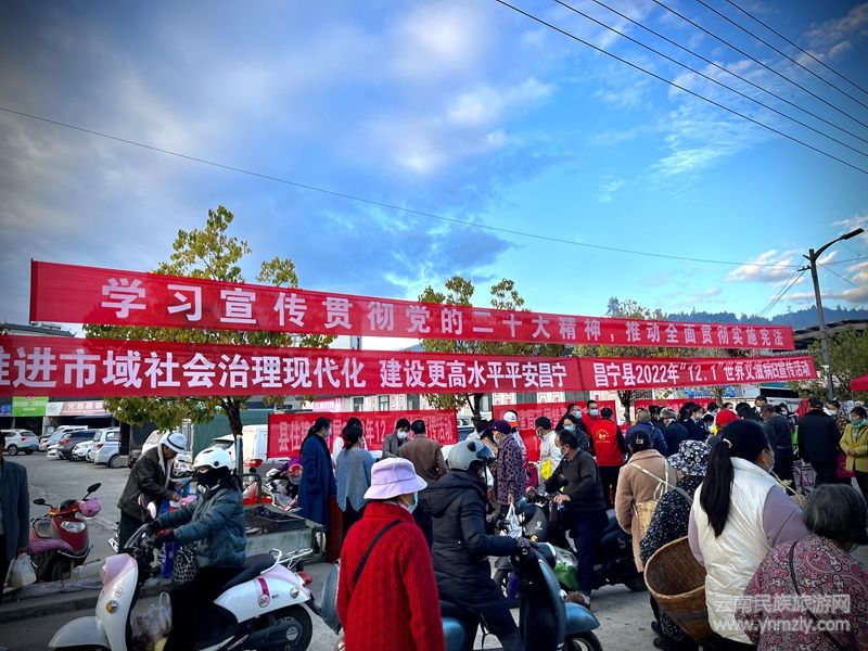 本網(wǎng)訊(通訊員李茂偉 楊魯小一) “來來來,孃孃、大爹,我們是普法宣傳服務(wù)志愿者,12月4日是國家憲法日,馬上要到了,今天我們給大家普及下憲法頒布實施、憲法內(nèi)容等相關(guān)法律常識。憲法是我國的根本大法,是所有法律的母法,我們國家現(xiàn)行憲法是1982年12月4日,審議通過并頒布實施的,到今年已經(jīng)是40周年了……”這樣的聲音時時回蕩在昌寧縣城南小區(qū)農(nóng)貿(mào)市場上空。12月1日上午,昌寧縣開展2022年國家憲法日暨“憲法宣傳周”集中示范宣傳活動,活動圍繞“學(xué)習(xí)宣傳貫徹黨的二十大精神,推動全面貫徹實施憲法”主題開展,縣委宣傳部、縣委政法委、縣人大辦、縣普法辦、縣司法局、縣衛(wèi)健局、縣住建局、縣教體局、縣婦聯(lián)、縣關(guān)工委等多家部門共同參與。