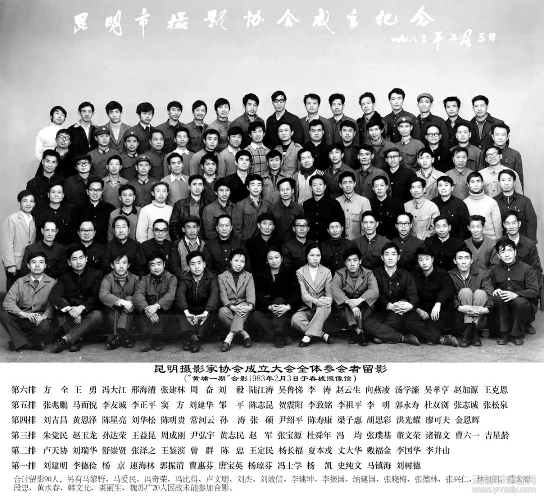 1983年2月3日昆明攝影協(xié)會成立合影照:笫四排左三為陳星亮,右七為本文作者尹紹平
