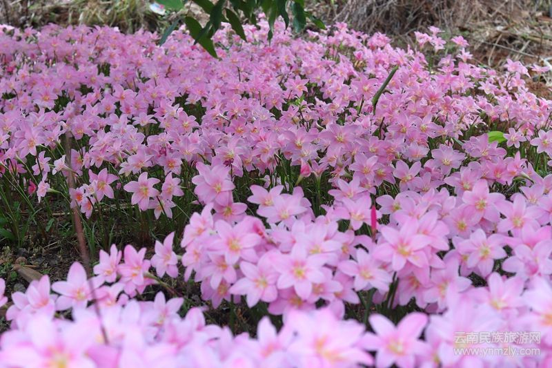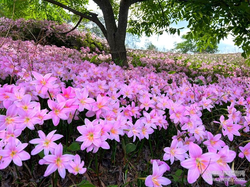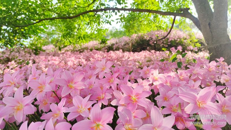 進(jìn)入五月,云南省保山市昌寧縣更戛鄉(xiāng)山野河谷到處開(kāi)滿(mǎn)韭蘭花。在木瓜樹(shù)村、立達(dá)村的山坡上,一片片韭蘭花絢麗綻放,一朵朵、一簇簇,美麗優(yōu)雅、千嬌百媚,微風(fēng)吹來(lái),粉紅色的花朵隨風(fēng)搖曳,讓人心曠神怡,徜徉在粉色花海中,讓人不知不覺(jué)沉醉其中,宛如夢(mèng)幻世界。從高處看,數(shù)十畝韭蘭花海連綿起伏,與藍(lán)天、青山相映,分外美麗。