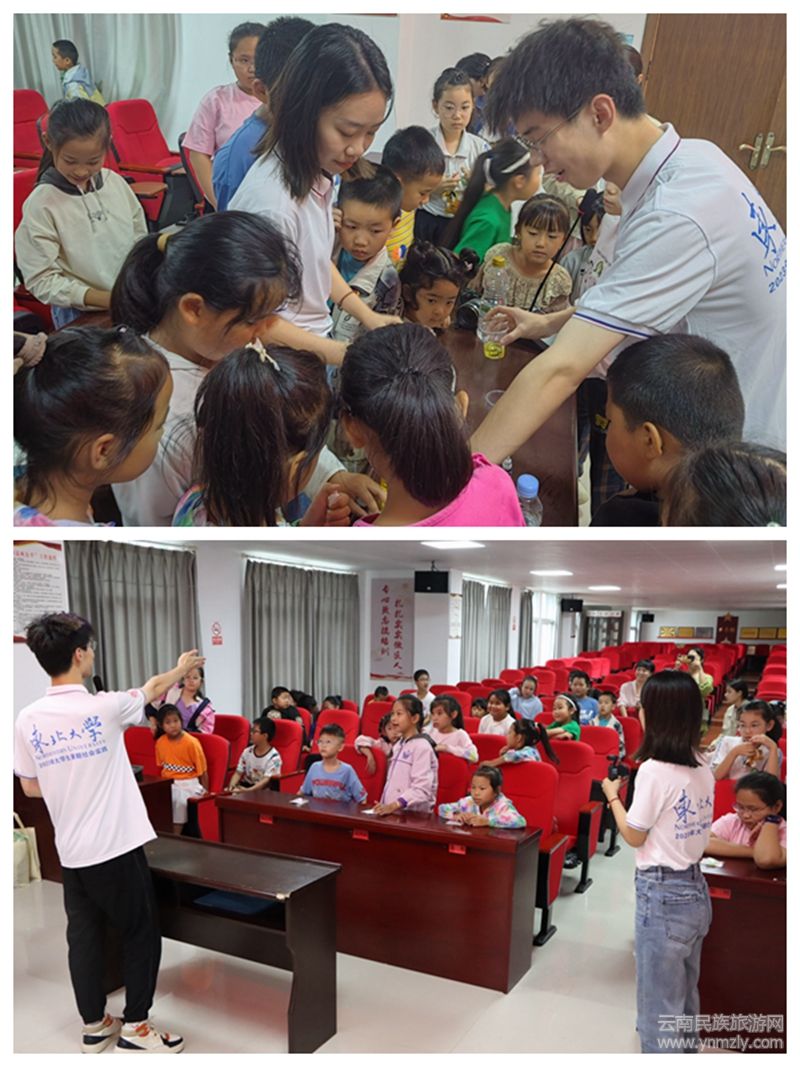 為了讓孩子們感受到科學(xué)的力量,志愿者給孩子們上了一堂生動(dòng)的“牛頓科學(xué)館”的課程。小朋友們跟隨著志愿者們一起探索神奇的科學(xué)世界,“火山噴發(fā)”“下彩虹雨”讓小朋友發(fā)出陣陣驚呼,拼積木游戲更是激發(fā)了小朋友的興趣。通過(guò)趣味實(shí)驗(yàn)活動(dòng),開(kāi)啟科學(xué)知識(shí)與樂(lè)趣的暑期奇遇,讓孩子們?cè)谔剿髦懈惺艿娇茖W(xué)的神奇與快樂(lè)。
