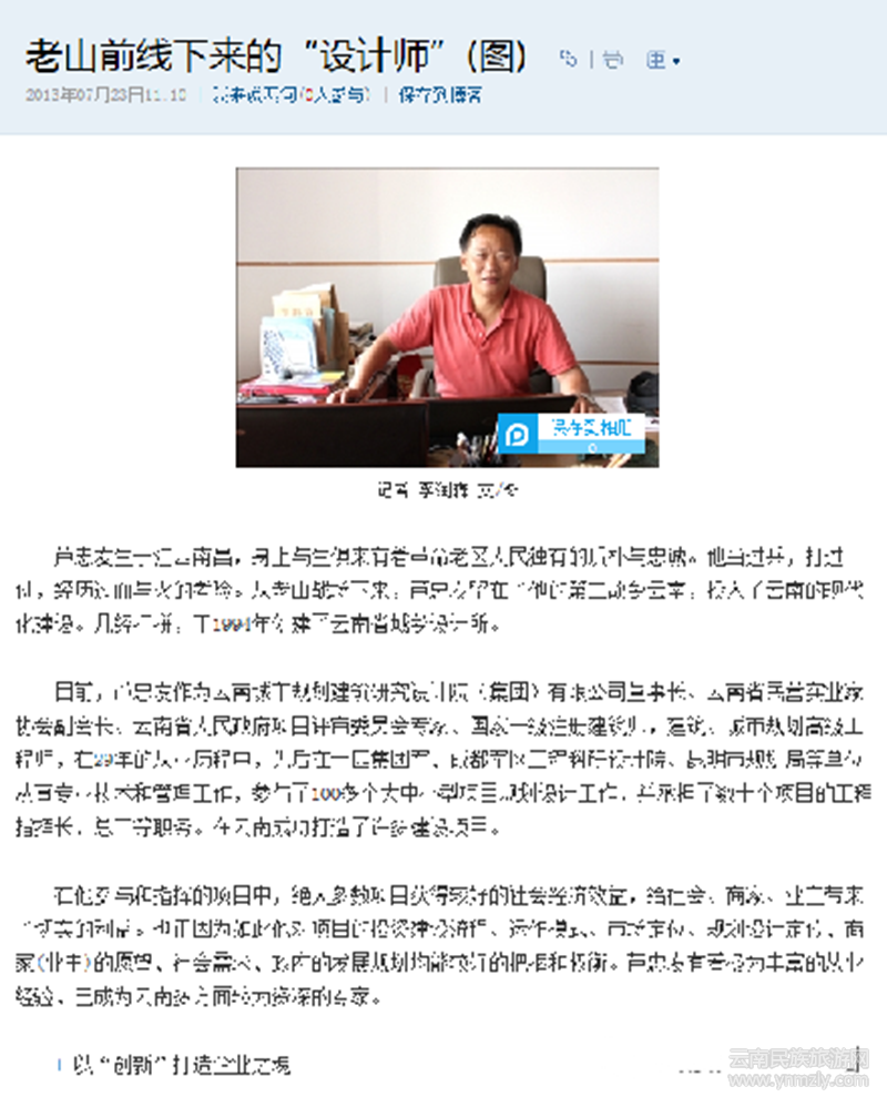 釆訪接近尾聲,蘆忠友告訴記者,云南城市規(guī)劃建筑設(shè)計(jì)院(集團(tuán))有限公司正打造為:城市中國(guó)·民族規(guī)劃第一院。公司正準(zhǔn)備推出《葫蘆定位助推鄉(xiāng)村振興規(guī)劃研發(fā)》課題項(xiàng)目。
