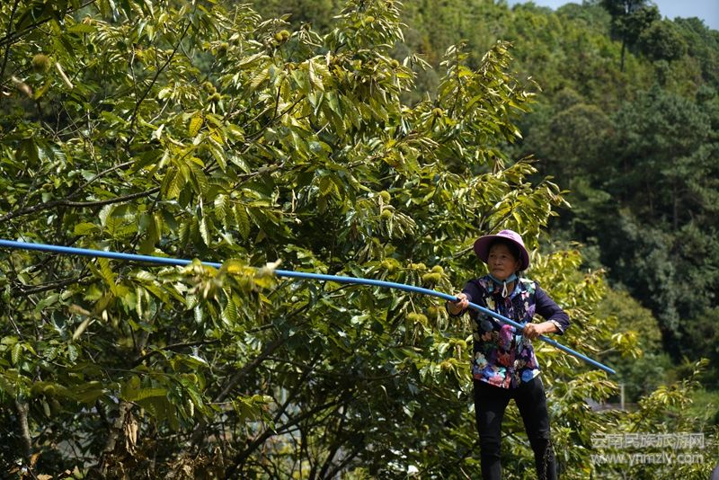 板栗產(chǎn)業(yè)不僅鼓起了群眾的“錢袋子”,還帶動(dòng)鄉(xiāng)村旅游,促進(jìn)了農(nóng)旅融合發(fā)展。在觀音山栗園農(nóng)莊,200多畝連片的板栗林郁郁蔥蔥,枝頭上一顆顆栗果撐破栗蓬,露出“笑臉”,工人們有的在敲打板栗樹上的果實(shí),有的穿梭在林間拾撿板栗。每年板栗成熟季節(jié),栗園農(nóng)莊的生意就很火爆,很多市民都會(huì)帶著家人、朋友到這里游玩,吃一頓農(nóng)家飯,體驗(yàn)一把拾撿板栗的樂趣,感受豐收的喜悅。