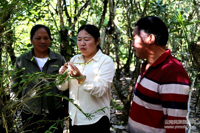 鎮(zhèn)安鎮(zhèn)邦邁兩半崖仿野生種植基地始建于2018年,投入之初,基地面臨栽培成活率低、肥水管理、病蟲害防治困難、長勢差等諸多難題,在得知龍陵有個本土專家時,李加能心懷忐忑向趙菊潤“求救”。趙菊潤二話沒說,多次往返李加能的種植基地進行指導。在趙菊潤的幫助下,基地走出了一條生態(tài)持續(xù)發(fā)展路子。當下,龍陵紫皮石斛已進入最佳采收時期,趙菊潤再次走進李加能種植基地,指導石斛采收和市場銷售。