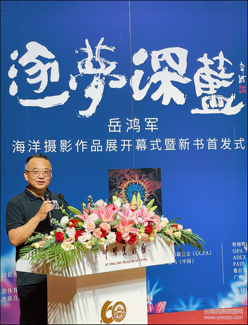 2023年8月4日,岳鴻軍的《逐夢(mèng)深藍(lán)——海洋攝影作品公益展》,在中國(guó)美術(shù)館開幕,把來自大海的美與呼喚,帶到了古老的京城,來自各界的人士、嘉賓和觀眾分享了他的深藍(lán)之夢(mèng),琉璃瓦下的藝術(shù)宮殿里,第一次出現(xiàn)了一片深藍(lán)色的海洋……