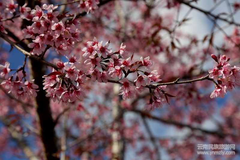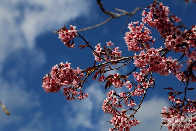 本網(wǎng)訊:“櫻花開燦如云霞,櫻花落滿地成詩。”“櫻桃花參差,香雨紅霏霏。”燦若紅霞的紅櫻俏立枝頭,構(gòu)成了一幅如夢如幻的冬日畫卷。誰說冬天就是蕭瑟的,誰說冬天沒有花朵盛放,當粉紅的櫻花與湛藍的天空在同一畫面時,你就會知道冬天的浪漫。