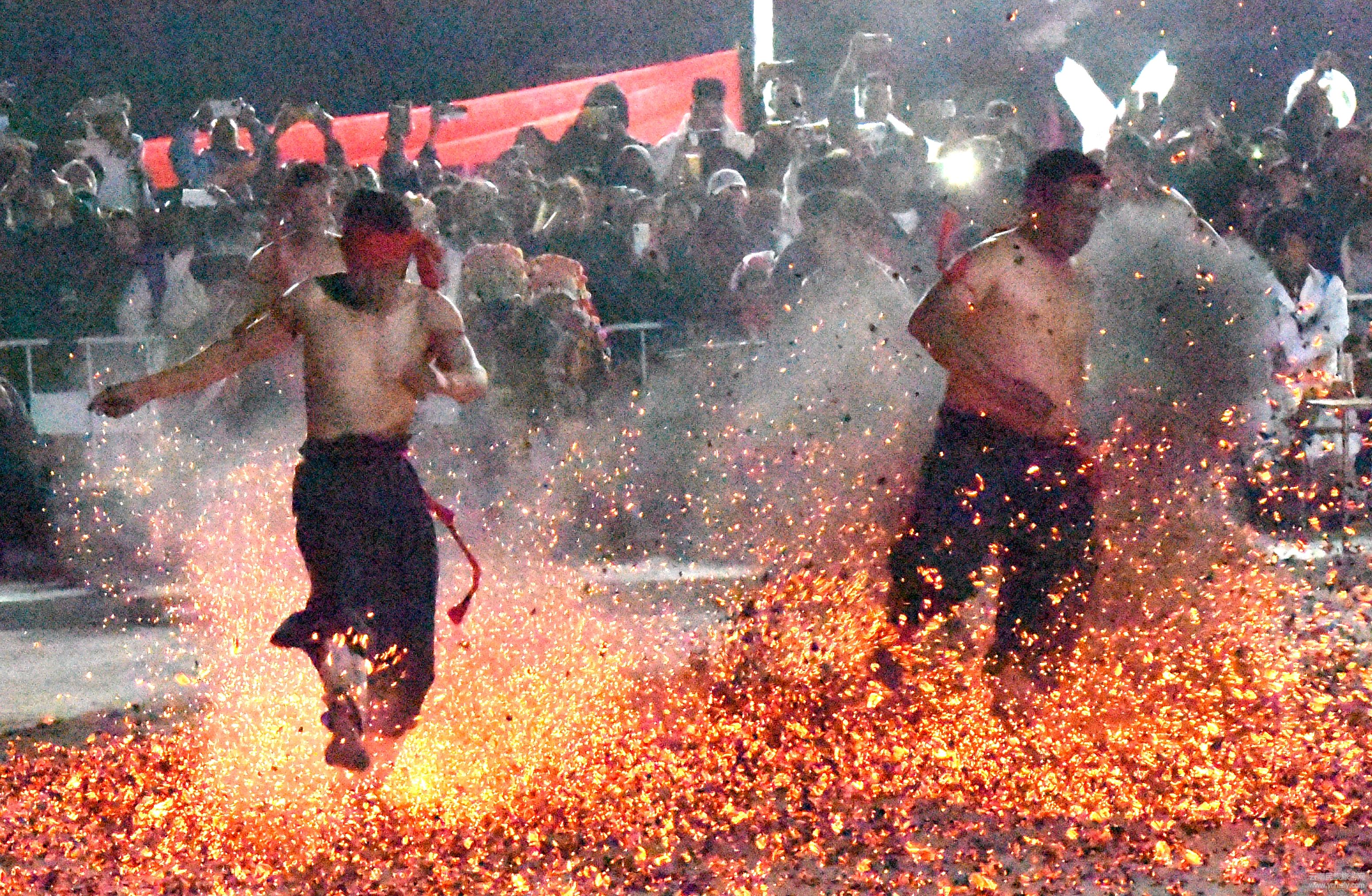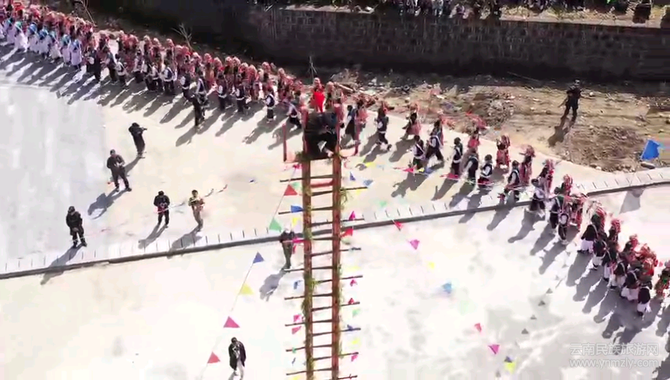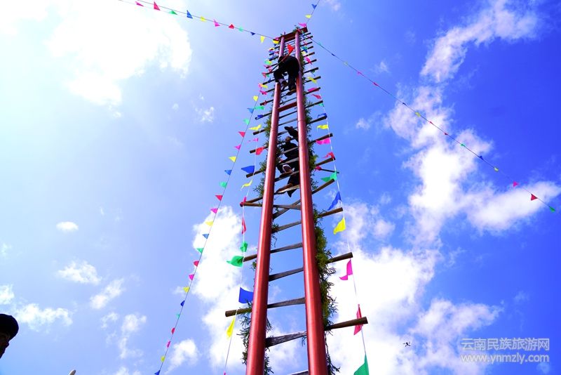 在闊時(shí)節(jié)活動(dòng)中,各種精彩紛呈的民族歌舞表演讓人目不暇接。在濃濃的節(jié)日氣氛下,最令人膽戰(zhàn)心驚的要數(shù)“上刀山、下火海” “踩玻璃”。“上刀山”,傈僳語稱“啊塔的”,主要講述了傈僳族兒女守邊護(hù)邊、保家衛(wèi)國(guó)的故事,它象征著傈僳族兒女誓死保家衛(wèi)國(guó)的精神。“下火海”,即“洗火澡”,意為洗去污濁,象征膽量和勇氣。