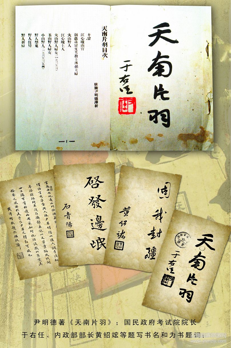 尹明德著《天南片羽》:國民政府考試院院長于右任`內(nèi)政部部長黃紹竤等題寫書名和為書題詞