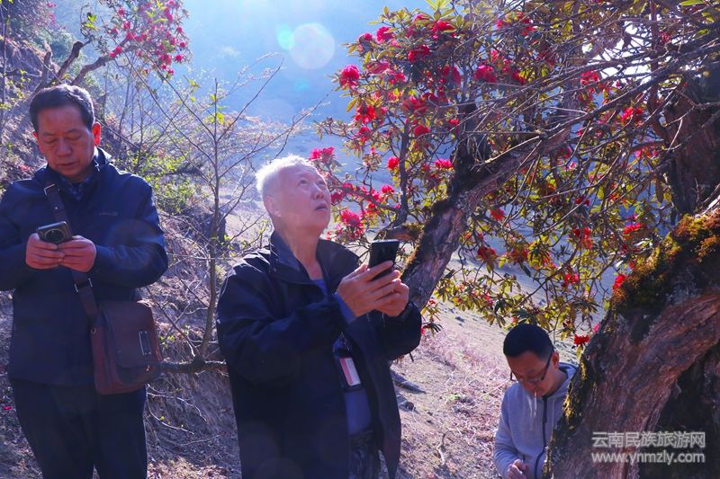 以前,我們數(shù)次光臨此地,而關(guān)注的焦點在于杜鵑花的分布情況等,此次考察,以植物學研究者眼光看待問題,故而側(cè)重于樹齡及生態(tài)環(huán)境考究,且據(jù)專家介紹,杜鵑花旁的榿木樹等,都是杜鵑花共生環(huán)境必不可少的植物。此次考察,完全刷新了此前我們對于滇灘杜鵑花的認識,時值我正在為滇灘鎮(zhèn)作歌《滇灘賦》,原來歌詞為“滿山杜鵑紅”,考察完畢,欣然將歌詞改為“百年杜鵑紅”,甚至有人建議改為“千年杜鵑紅”,歌詞內(nèi)涵完全改變了。專家還提出將滇灘打造成“杜鵑花之鄉(xiāng)”的建議。